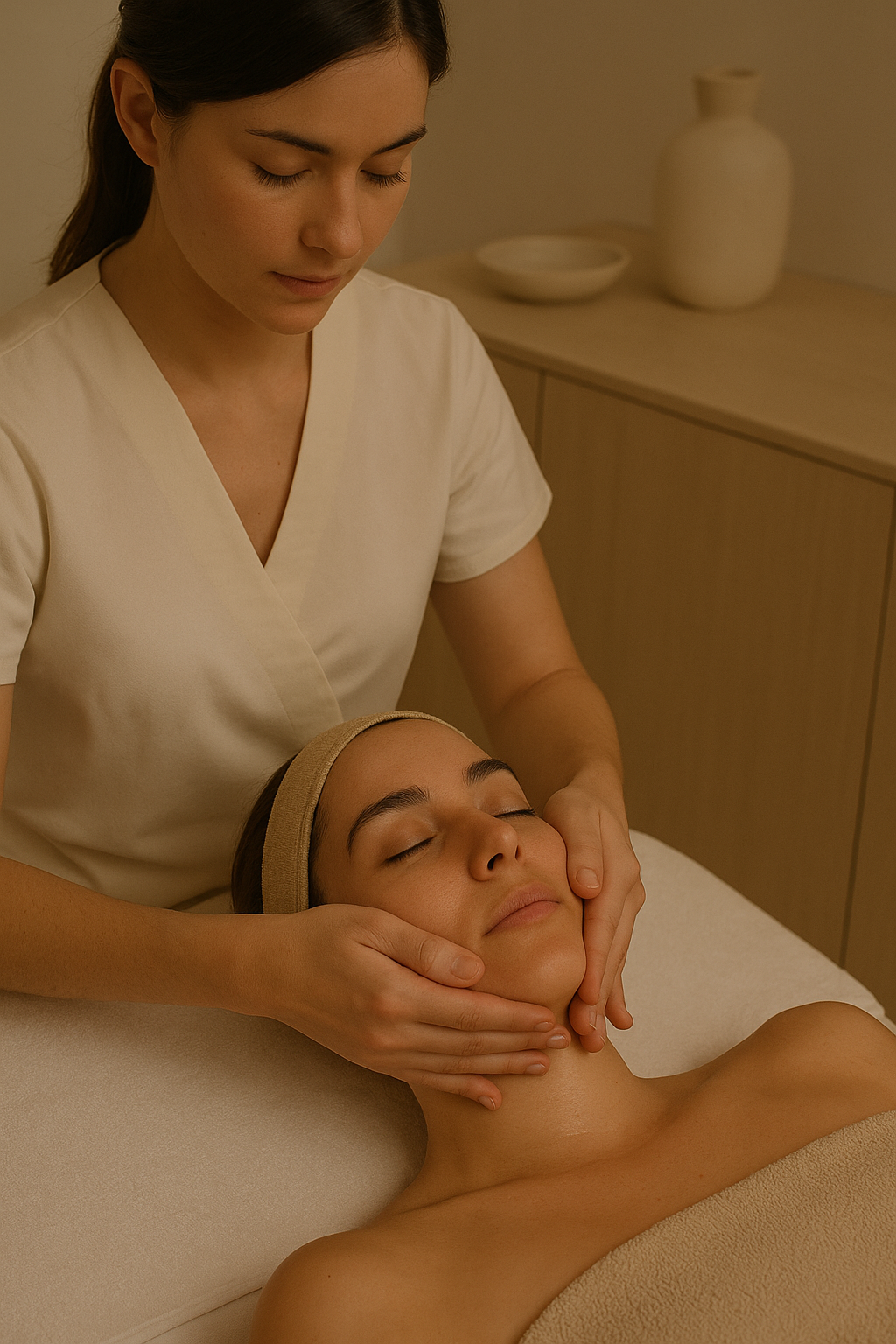 maniobras firmes y una precisión que trabaja la musculatura profunda sin agresión. La piel se reorganiza,